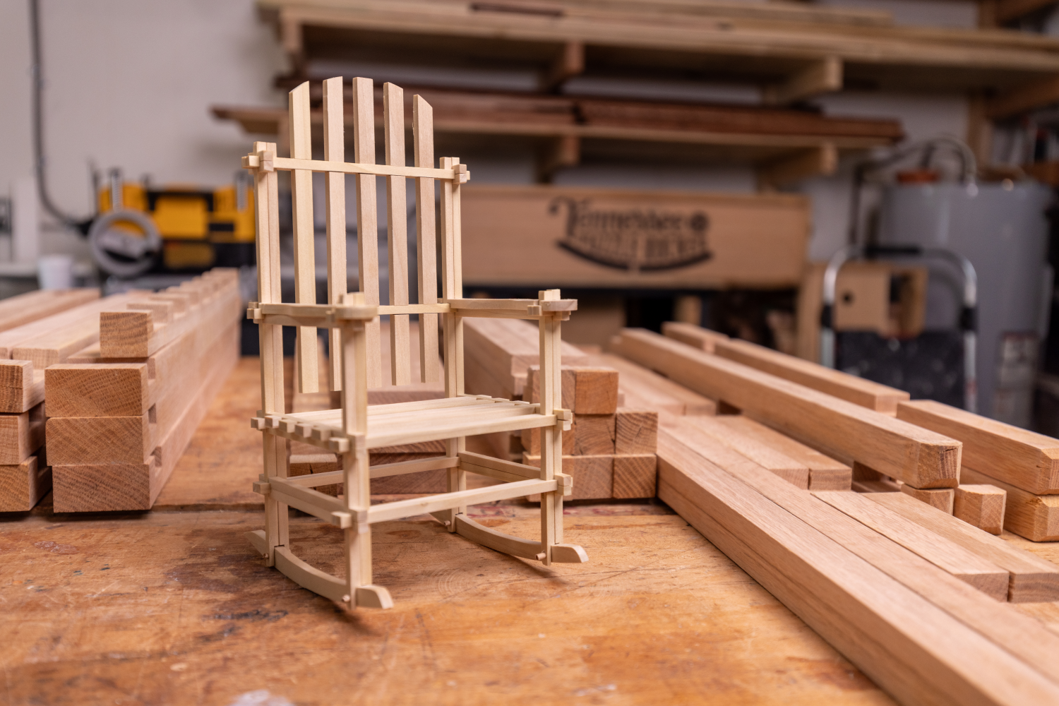 Our puzzle rocker is entirely comprised of handcrafted interlocking wooden pieces. No nails, screws, or glue! Attaching the runners is the last piece of the puzzle (that’s a hint!) to lock the entire assembly and enjoy your beautiful rocker for years to come.